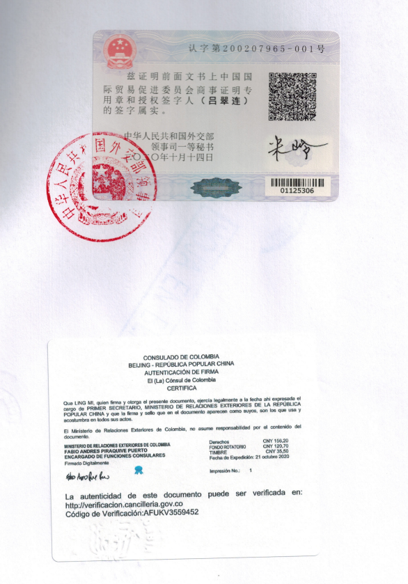 3、哥倫比亞使館認證注意事項: